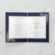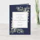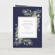 Com delicadas folhas de folhagem verde em aquarela sobre um fundo azul marinho, este elegante programa de casamento dobrável botânico pode ser personalizado com as informações do seu dia especial de casamento. Projetado por Thisisnotme©