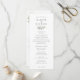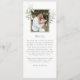 Elegante programa de núpcias, com uma folha de sage em azul empoeirado e verde, na parte de trás do programa de núpcias, você pode adicionar sua própria foto e obrigado seu texto. A foto é cercada por uma folhagem verde semitransparente.