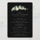 Um programa de casamento preto/ordem de cerimônia, com uma lista para um pequeno casamento e uma mensagem de agradecimento no verso. Com um caule elegante de snowberries pintadas à mão e eucalipto e uma dispersão de pontos. Todo o texto é totalmente editável. Por favor, visualize esta Coleção na minha loja para programas com palavras/alinhamentos alternativos e em diferentes tamanhos/cores/formatos. Itens coordenados também disponíveis.