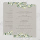 Um programa de casamento de inverno greige elegante/ordem de cerimônia, com uma lista para um pequeno casamento e uma mensagem de agradecimento no verso. Com uma borda de snowberries pintadas à mão e eucalipto e uma dispersão de pontos. Todo o texto é totalmente editável. Por favor, visualize esta Coleção na minha loja para programas com redação/layout alternativos e em diferentes tamanhos/cores/formatos. Itens coordenados também disponíveis.