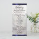 Este design apresenta uma imagem translúcida das montanhas sobre um elegante fundo branco pérola com bordas de fita azul, detalhes da cerimônia de casamento e obrigado você na frente com os membros da festa de casamento no verso. Projetado para coordenar com a coleção de casamentos das Montanhas Watercolor. Para alterar os detalhes, clique em "Personalizar". Para mover o texto ou alterar o tamanho, a fonte ou a cor do texto, clique em "Clique para personalizar mais"