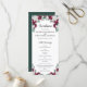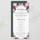 Este programa de casamento apresenta um belo gráfico de poinsettias burgundy e brancas e é perfeito para um casamento na época de Natal. Personalize a frente do programa com seus nomes, data do casamento, ordem da cerimônia e um breve agradecimento. A parte traseira oferece texto personalizado para os nomes dos pais e sua comitiva de casamento.