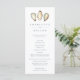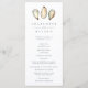 Compartilhe seus detalhes da cerimônia de casamento e da festa de noivas em estilo elegante com esses lindos programas de casamento costeiros com um trio de ilustrações de casca de ostras aquáticas. Personalize a parte frontal com os detalhes da sua cerimônia e adicione a sua festa de casamento à parte traseira em marinho com caracteres azuis. Projetado para coordenar com a nossa coleção de casamentos de Ostras Costeiras.
