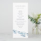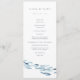 Este elegante design do programa de verão para casamentos modernos de praia mostra uma escola de peixes de aquarelas azuis nadando ao longo do fundo. Personalize com seu programa de cerimônias de casamento em marinho azul e adicione seus detalhes de festa de casamento no verso.