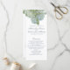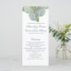 Hipóteses azuis com fundo azul empoeirado (pantone 16-4010tpx ou hex #8c9pai) no programa editável de cerimônia de casamento. Perfeito para primavera, verão, casamentos de jardim. Veja todas as peças de coordenação na coleção de Casamento de Hídrangea azul.