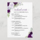 Esses belos cartões são projetados para informar aos convidados o cronograma da celebração do seu casamento. O design rústico boho chic inclui rosas pintadas à mão em aquarela, folhas de eucalipto e folhagens de jardim em tons de roxo, ameixa e lavanda. A frente tem uma lista de eventos para todo o fim de semana, e o verso tem um cronograma detalhado para o dia do casamento. Ótimo complemento para uma bolsa de boas-vindas de casamento e uma maneira maravilhosa de agradecer aos convidados por celebrarem com você!