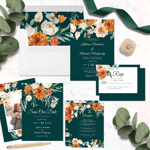 Elegant Burnt Orange Floral Autumn Wedding SuiteCriado por Serene Smith