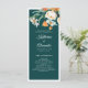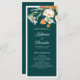 Teal Burnt Orange Elegant Script Floral Wedding Program.
