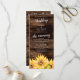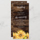 Programa de casamento russo do girassol com flores amarelas a cores da água em um fundo de madeira de celeiro com cerimônia de casamento e informações da festa. Programa temático perfeito para o verão e casamentos outono.