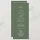 Este refinado programa de casamento verde de sábio da Coleção Sophia apresenta caligrafia varrida em branco nítido. Elegante, mas ao ar livre — é ideal para jardins, vinhedos ou casamentos florestais com um sentimento natural e romântico. Inclua as iniciais dos casais, os nomes do casal, a data e o local do casamento, a mensagem do obrigado, a ordem de serviço, a festa de casamento e um memorial opcional "em memória amorosa".
