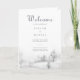 Este programa de casamento dobrado na montanha de inverno é perfeito para um casamento de destino. A design apresenta uma floresta pintada manualmente em colinas e montanhas em uma cena de inverno idílica. Inclua uma citação ou mensagem curta, ordem de serviço, festa de casamento e obrigado da mensagem.