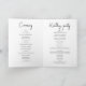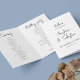 Este programa de caligrafia de casamento preto e branco dobrado traz elegância clássica e simplicidade moderna aos detalhes da sua cerimônia. Apresentando um script de estilo manuscrito fluente em conjunto com um layout limpo e minimalista, este programa dobrado é ideal para casamentos formais, tradicionais ou românticos. A paleta branca e preta do eterno melhora sua sofisticação, enquanto o formato dobrado proporciona amplo espaço para a ordem da sua cerimônia, festa de casamento, leituras ou notas especiais. Um belo guardião para seus convidados e um complemento na moda para sua suíte de casamento.