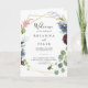 Este programa de casamento dobrado geométrico dourado borgonha é perfeito para um casamento de inverno. O design boho elegante apresenta flores em tons de azul-marinho aquarelado, rosa e vinho com detalhes a lápis artísticos.
