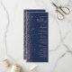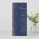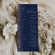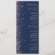 A borda esquerda deste elegante programa de casamento moderno apresenta um rosa dourado faux glitter design. O texto personalizável combina a escrita manual rosa-rosa, a placa de impressão e as fontes itálicas em um fundo azul-marinho.