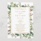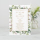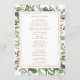 Este programa de casamento apresenta cores aquáticas pintadas de eucalipto, folhas verdes, bagas vermelhas, ramos de pínus, e uma falsa estrutura retangular de ouro. Para personalização mais avançada deste design, clique no link "Personalizar mais". Itens correspondentes também estão disponíveis.