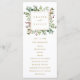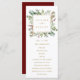 Este programa de casamento apresenta eucalipto pintado à aquarela, folhas verdes, bagas vermelhas, ramos de pinheiro e uma moldura quadrada dourada falsa com fundo vermelho no verso. Para personalização mais avançada deste design, clique no link "Personalizar ainda mais". Itens correspondentes também estão disponíveis.