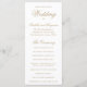 Avise aos seus hóspedes o que esperar em seu dia especial com este programa de casamento tradicional com seus nomes em uma elegante caligrafia de tom de ouro e a ordem da cerimônia na frente. A parte de trás tem a sua festa de casamento. Além de informar seus convidados sobre a ordem do serviço e quem está na festa de casamento, esses programas de casamento fazem uma lembrança de excelente. Este design clássico é perfeito para um casamento formal.