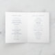 Simples programa de casamento dobrado com um design moderno, mas elegante. O cobrir tem seu monograma inicial junto com seus detalhes de casamento em branco sobre um fundo azul empoeirado. A dentro tem a festa de casamento do lado esquerdo e a ordem da cerimônia do lado direito. A parte de trás tem seu obrigado pessoal. Todas as cores do elemento design podem ser alteradas na ferramenta de edição de design. Um design chic e na moda que é excelente para um casal minimalista.