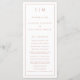 Programa de Casamento Moderno com um design simples, mas elegante, com um layout tradicional. Seu monograma de duas letras está no topo junto com seus detalhes cercados por uma borda fina. Todos os elementos de design são rosa dourados falsos sobre um fundo branco e podem ser alterados na ferramenta de edição design. Um design minimalista com um sentimento clássico que é excelente de um casamento formal.