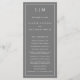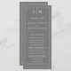 Programa de Casamento Moderno com um design simples, mas elegante, com um layout tradicional. Seu monograma de duas letras está no topo junto com seus detalhes cercados por uma borda fina. Todos os elementos de design são brancos sobre um plano de fundo de cinza médio e podem ser alterados na ferramenta de edição de design. Um design minimalista com um sentimento clássico que é excelente de um casamento formal.