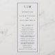 Programa de Casamento Moderno com um design simples, mas elegante, com um layout tradicional. Seu monograma de duas letras está no topo junto com seus detalhes cercados por uma borda fina. Todos os elementos de design são pretos sobre um fundo de cinza claro e podem ser alterados na ferramenta de edição design. Um design minimalista com um sentimento clássico que é excelente de um casamento formal.