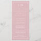 Programa de Casamento Moderno com um design simples, mas elegante, com um layout tradicional. Seu monograma de duas letras está no topo junto com seus detalhes cercados por uma borda fina. Todos os elementos de design são brancos sobre um fundo cor-de-rosa rosa empoeirado e podem ser alterados na ferramenta de edição design. Um design minimalista com um sentimento clássico que é excelente de um casamento formal.