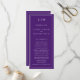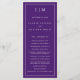 Programa de Casamento Moderno com um design simples, mas elegante, com um layout tradicional. Seu monograma de duas letras está no topo junto com seus detalhes cercados por uma borda fina. Todos os elementos de design são brancos sobre um fundo roxo real e podem ser alterados na ferramenta de edição de design. Um design minimalista com um sentimento clássico que é excelente de um casamento formal.