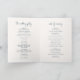 Um programa de casamento elegante com um design simples e clássico com seus nomes em um roteiro moderno e seus detalhes em uma combinação de fontes tradicionais de serifa e itálico.