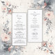 Coloque seu elegante casamento mínimo no menu do casamento e no programa do casamento. A design do casamento tem um fundo branco com tipografia negra. Personalize-o na primeira página com a introdução, os nomes, a data e o menu. Na página de trás você pode personalizá-lo com seu programa de casamento e mudá-lo para suas preferências. Assim, com esta design você tem o menu em uma página e o programa de casamento do outro lado sem custos adicionais. Ele ajustado para nossos designs florais e inclui a cor do damasco. Projetado para o seu Hobinishop de casamento