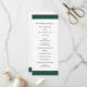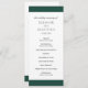 Um programa de casamento verde esmeralda moderno com uma banda ousada no topo e no fundo. Seus nomes estão em uma fonte serif clássica e seus detalhes estão em uma combinação de uma fonte sans serif moderna e um script elegante. A parte de trás tem uma banda ao longo do fundo junto com o seu monograma. Esta simples e mínima design com a redação tradicional é excelente para um casamento formal.