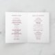 Simples programa de casamento dobrado com um design moderno, mas elegante. O cobrir tem seu monograma inicial junto com seus detalhes de casamento em branco sobre um fundo burgundy. A dentro tem a festa de casamento do lado esquerdo e a ordem da cerimônia do lado direito. A parte de trás tem seu obrigado pessoal. Todas as cores do elemento design podem ser alteradas na ferramenta de edição de design. Um design chic e na moda que é excelente para um casal minimalista.