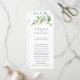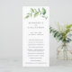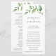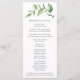 Programa de casamento rústico com um design simples com um ramo pintado com aquarela verde com folhas grandes, sobre um fundo branco. A frente tem os eventos da sua cerimônia e o verso tem os membros do seu casamento. Um design botânico elegante que é ótimo para uma celebração no verão.