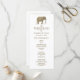Simples, elegante, mínimo programa de casamento branco com moderno roteiro de caligrafia e monograma de elefante de folha de ouro - com iniciais no topo.