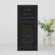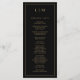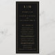 Programa de Casamento Moderno com um design simples, mas elegante, com um layout tradicional. Seu monograma de duas letras está no topo junto com seus detalhes cercados por uma borda fina. Todos os elementos de design são dourados falsos sobre um fundo preto e podem ser alterados na ferramenta de edição de design. Um design minimalista com um sentimento clássico que é excelente de um casamento formal.