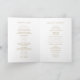 Simples programa de casamento dobrado com um design moderno, mas elegante. O cobrir tem seu monograma inicial junto com seus detalhes de casamento em ouro falso sobre fundo preto. A dentro tem a festa de casamento do lado esquerdo e a ordem da cerimônia do lado direito. A parte de trás tem seu obrigado pessoal. Todas as cores do elemento design podem ser alteradas na ferramenta de edição de design. Um design chic e na moda que é excelente para um casal minimalista.