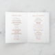 Simples programa de casamento dobrado com um design moderno, mas elegante. O cobrir tem seu monograma inicial junto com seus detalhes de casamento em branco sobre um terracota / laranja queimada / fundo de ferrugem. A dentro tem a festa de casamento do lado esquerdo e a ordem da cerimônia do lado direito. A parte de trás tem seu obrigado pessoal. Todas as cores do elemento design podem ser alteradas na ferramenta de edição de design. Um design chic e na moda que é excelente para um casal minimalista.