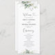 Programa Casamento Eucalyptus Leaf Greenery. Este convite de casamento na moda e elegante apresenta uma linda aquarela pintada manualmente Eucalyptus Leaf Greenery. Localize itens correspondentes na Coleção de Gerência Eucalyptus Folha de Watercolor.