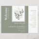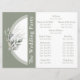 Um elegante programa de casamento simples, de dois lados - verde sábio e branco em cor com lindas folhas de eucalipto que é fácil de atualizar.