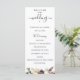 Casamento com flores e folhagens em aquarela rosa e ameixa. Programa apresenta caligrafia fofa de "casamento" com várias linhas para listas de texto personalizadas para ordem dos eventos da cerimônia, festa de casamento e nota de agradecimento.