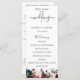 Elegantes flores e folhagens em aquarela azul naval, borgonha e bege, programa de casamento. O programa apresenta um acento de caligrafia fofa "casamento" com várias linhas para listas de texto personalizadas para a ordem dos eventos da cerimônia, festa de casamento e nota de agradecimento.