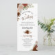 Este belo programa de casamento apresenta um elegante design floral boho chic com rosas pintados à mão em tons de laranja feroz, número queimado, coral e pêssego em um fundo branco. Os títulos são escritos em caligrafia com script de rico, e há espaço para os detalhes da sua cerimônia e festa de casamento, assim como um obrigado curto para o seu convidado. É uma maneira maravilhosa de dar as boas-vindas aos seus amigos e familiares à sua celebração de casamento.