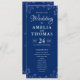 Elegante Dusty French Blue and White Floral Wedding Program Comemore seu dia especial com este sofisticado e eterno programa de casamento! Com um clássico fundo azul marinho com um lindo padrão floral branco, este design é perfeito para um casamento moderno e elegante. A tipografia simples mas elegante acrescenta um toque de charme, enquanto os sotaques florais criam uma atmosfera romântica e convidativa. Perfeito para: Um casamento moderno e na moda Um evento formal ou de gravata negra Um outono ou casamento no inverno Um jardim ou casamento ao ar livre