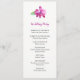 Estes programas de casamento apresentam flores e folhas de orquídeas roxas e aquarelas. A frente do cartão tem a cerimônia e a parte traseira do cartão lista a festa noiva. Estes programas de casamento fazem parte de uma coleção que inclui um cheio de papelaria de casamento que você pode personalizar para o seu casamento. Visite nossa loja para ver o intervalo de cheios.