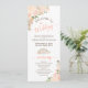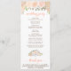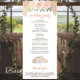 Este belo programa de casamento apresenta um elegante design floral boho chic com rosas pintados à mão e flores em tons de coral, pêssego e laranja claro, rodeados por delicados filhotes de folhas de eucalipto e verde de jardim. Os títulos são escritos em caligrafia com script de rico, e há espaço para os detalhes da sua cerimônia e festa de casamento, assim como um obrigado curto para o seu convidado. É uma maneira maravilhosa de dar as boas-vindas aos seus amigos e familiares à sua celebração de casamento.