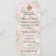 Um elegante e decorativo programa de casamento floral apresentando um padrão floral de tons pastéis suaves no fundo com todos os detalhes personalizados tanto na frente quanto no verso. No topo da frente do cartão há uma bela jóia dourada e esmeralda (apenas impressa) e na parte inferior do verso há um par de alianças de casamento douradas. Você pode ver o conjunto completo de papelaria de casamento que este programa foi feito para combinar aqui: https://www.zazzle.com/collections/golden_jewelled_floral_wedding-119090569795072593