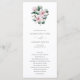 Elegante programa de casamento floral com um buquê de flores cor d'água pintadas de magnólia rosa, juntamente com folhas de eucalipto. A frente tem a sua ordem de cerimônia e as costas têm a sua festa de casamento. Um programa de casamento adorável que é excelente para um casamento de primavera ou verão.