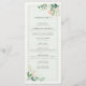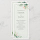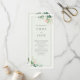 Este maravilhoso programa de casamento apresenta um motif botânico refinado com uma fina pincelada e florais brancos e uma folhagem verde esmagadora, colocada sobre um fundo verde macio e pálido. O layout limpo apresenta sua festa de casamento e ordem de cerimônia em uma fonte serif moderna, fácil de ler, limitada por uma sutil e fina estrutura de linha. Acentos de flores ao estilo aquarela em cada canto adicionam um toque romântico e natural, perfeito para jardinagem, primavera ou casamentos ao ar livre. A frente mostra os nomes do casal, junto com uma ordem detalhada de cerimônia. O reverso lista a festa de casamento do cheio, incluindo oficial, pais, madrinha de casamento, melhor homem, damas de honra, padrinhos de casamento, florista e portadora de anéis. Este modelo é totalmente personalizável para seus próprios nomes e detalhes. Ideal para casais que buscam uma nova, elegante e inspirada na natureza, busca por sua papelaria de casamento.