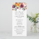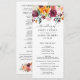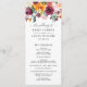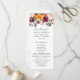 Vibrantes flores de outono em tons ricos de borgonha, rosa, laranja e tons quentes cascateiam por este programa de cerimônia simples rústico. "O Casamento De" aparece em letra cursiva elegante com seus nomes, data e ordem completa da cerimônia na frente, enquanto a parte de trás apresenta seu casamento e uma mensagem de agradecimento com um acento floral de outono coordenado. Ambos os lados são totalmente personalizáveis.