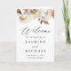 Programa de casamento floral russo do outono, com uma borda superior de flores e folhagem em forma de aquarela, em tons de marfim, creme, marrom e laranja. O buquê floral de outono é complementado por um moderno roteiro de caligrafia. Personalize a frente do programa de casamento floral do boho de outono com seus nomes, data do casamento e local. O dentro do programa apresenta a ordem de serviço e a sua festa de casamento. A parte de trás do programa de casamento dobrado mostra um buquê correspondente ao seu obrigado, a mensagem abaixo. Projetado para coordenar com a nossa coleção de casamento Rustic Autumn Floral.