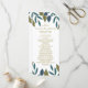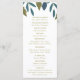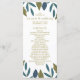 Estes modelos são perfeitos para qualquer casal planejando uma tenda celebração moderna do casamento. O design apresenta folhas de folhagem desenhadas à mão na moda em tons de azul e verde sobre um fundo branco limpo e é finalizado com uma redação simples de edição. O design simples pode ser personalizado para se adequar ao seu evento especial e será a ordem de serviço perfeita para qualquer festa temática floral, incluindo chás de panela, noivados, chás de casamento, festas de aniversário e muito, muito mais.